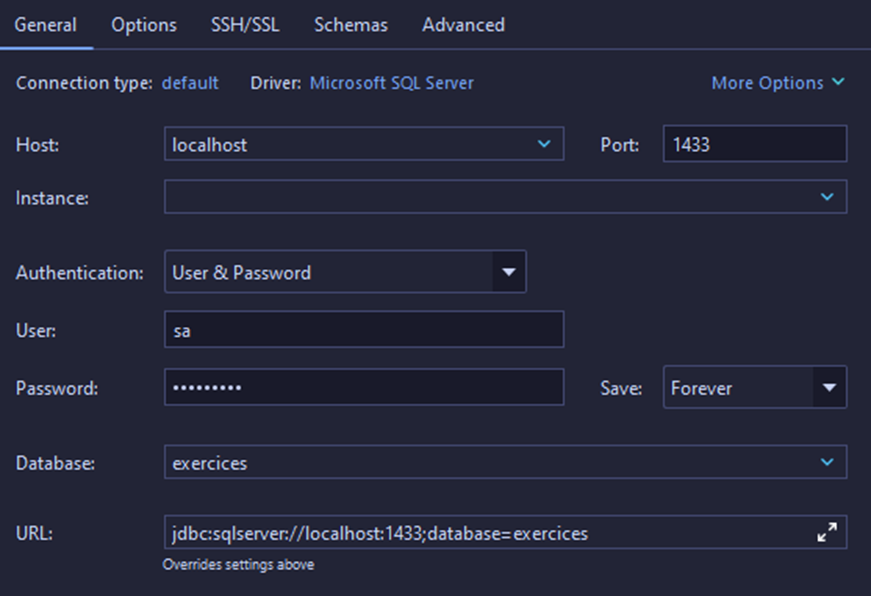 - Ajoutez les informations suivantes (rappel : le mot de passe est