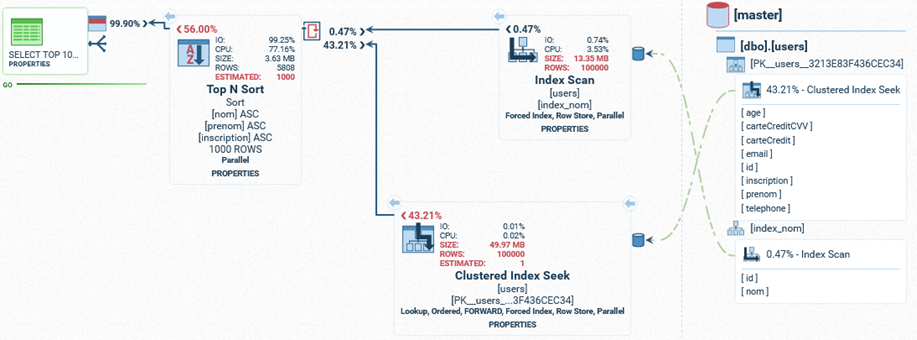 SELECT TOP 1000 * FROM users WITH (INDEX(index_nom)) ORDER BY nom, prenom, inscription ;
